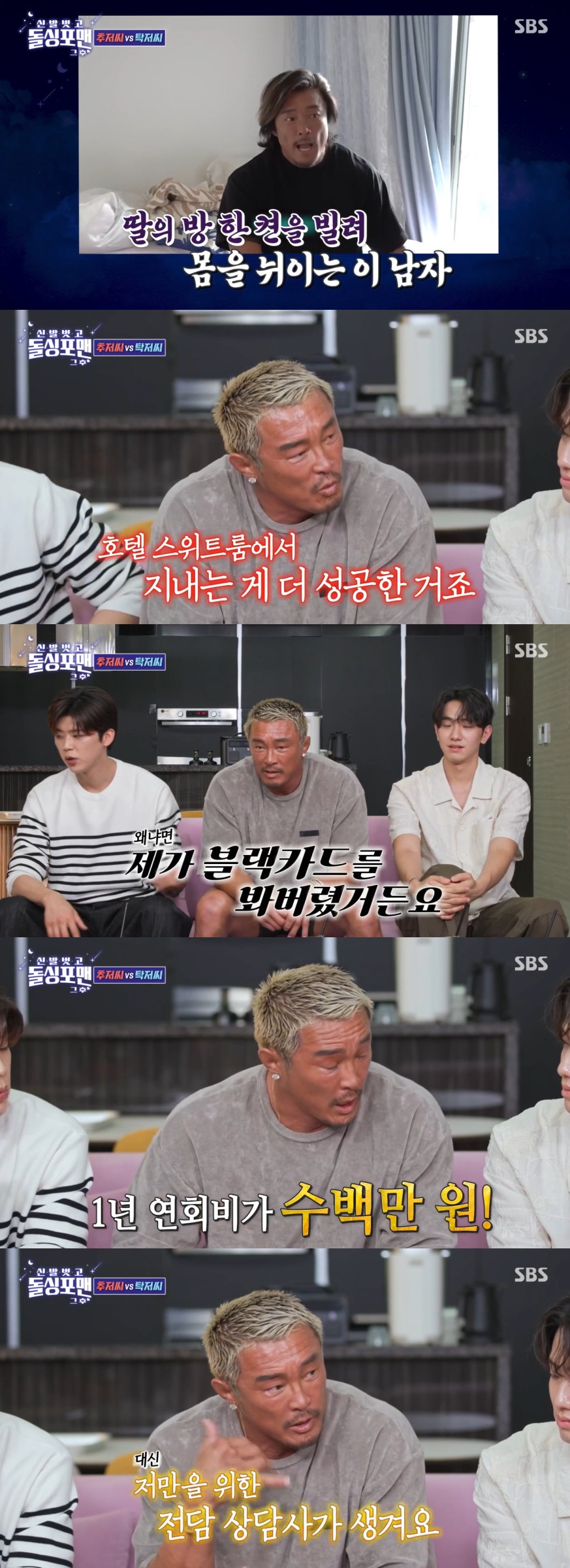 추성훈은 "1년 연회비가 500만 원이다. 그런데 이게 전담 상담사가 생긴다. 바로 전화하고 해달라하면 된다"며 아무나 가질 수 없는 재력의 상징 블랙카드를 쓰는 이유를 밝혔다.