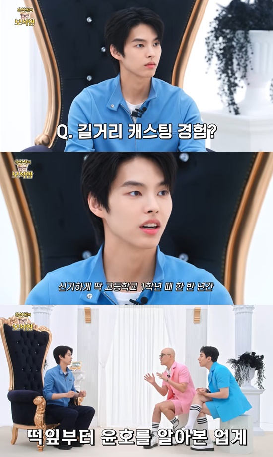 '밤이 되었습니다'를 통해 데뷔한 지 2년이 됐다는 박윤호는 길거리 캐스팅 경험이 있냐는 말에 "신기하게 고등학교 1학년 때 반 년간 제의를 받았다. 살면서 그 때만 받았다. 그 전이나 후로는 받은 적이 없다"면서 당시 피부가 좋았다고 말했다.