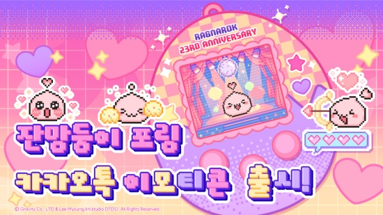 (엑스포츠뉴스 유희은 기자) 글로벌 게임 기업 그라비티가 라그나로크 23주년을 기념해 ‘잔망둥이 픽셀 포링이가 뽀잉’ 이모티콘을 카카오 이모티콘샵에 6일 출시했다.