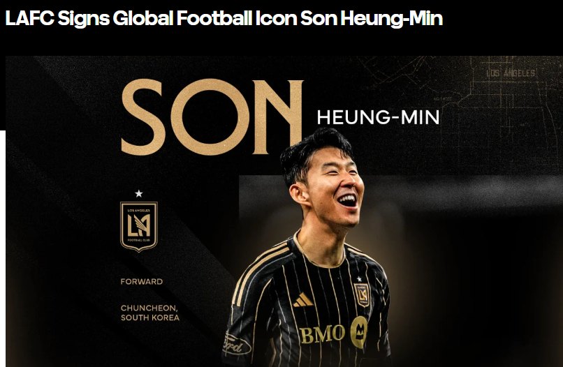 LAFC는 7일(한국시간) 구단 공식 홈페이지를 통해 "LAFC는 글로벌 축구 아이콘 손흥민을 영입했다"라고 발표했다.