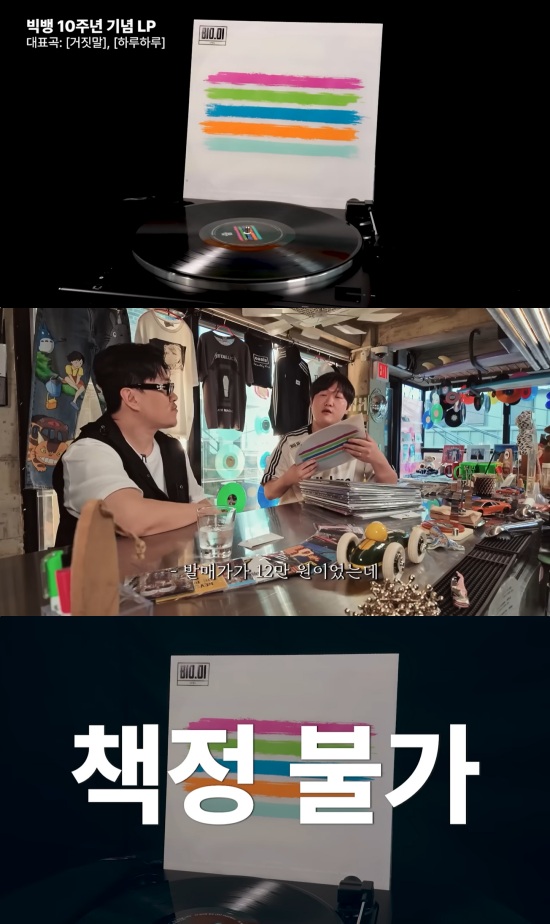 가장 먼저 소개한 LP는 빅뱅(BIGBANG)의 데뷔 10주년 기념 LP였다. 그는 "최근에 지드래곤이랑 뭐 찍으셨길래 가져왔다"며 "유명한 것들이 모여져 있는 싱글인데, '거짓말', '마지막 인사', '하루하루' 등이 있다"고 설명했다.