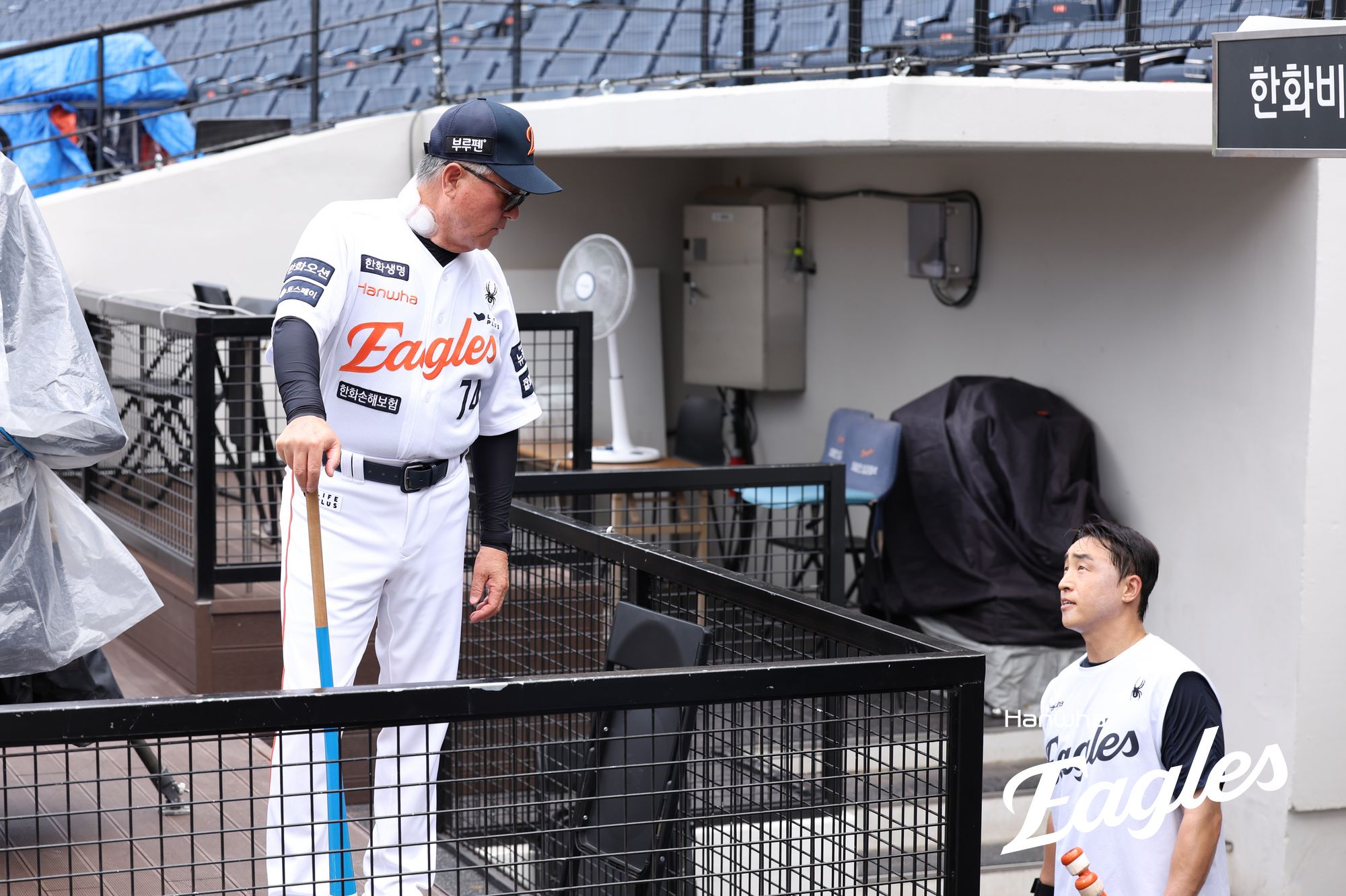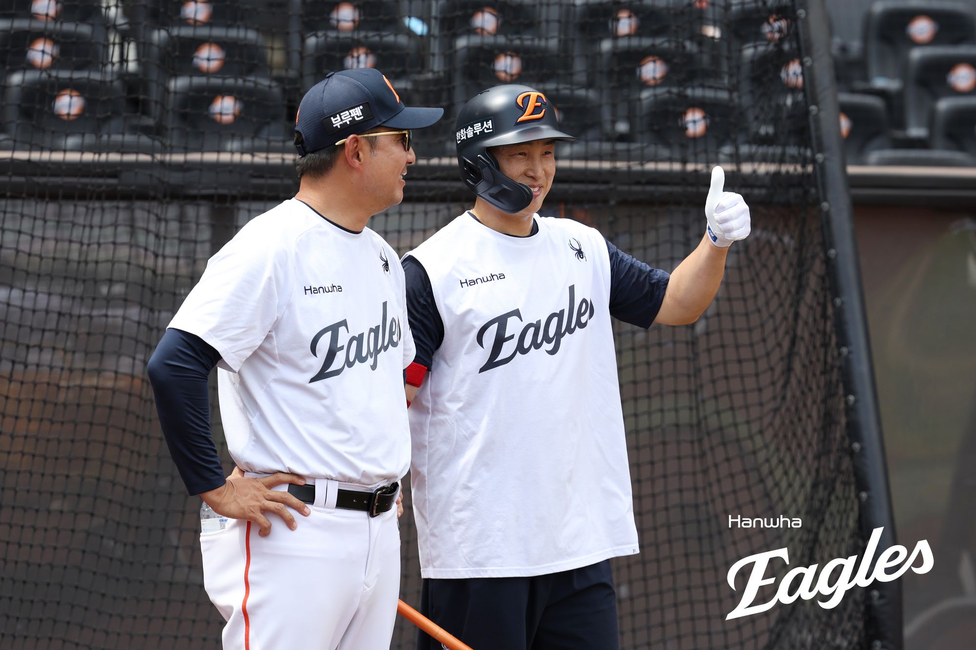 손아섭은 7일 대전 한화생명 볼파크에서 열리는 2025 신한 SOL Bank KBO리그 KT 위즈와의 홈경기를 앞두고 라이브 배팅을 소화했다. 김경문 감독은 물론 전 코칭스태프와 코디 폰세 등 선수들까지 손아섭의 훈련 장면을 지켜봤다.