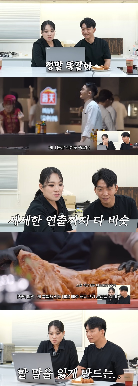 함께 '이판펑선'을 보기 시작한 두 셰프는 "이런 구도도 다 비슷하지 않나"라며 의문을 표했고, 등장하는 셰프들 또한 '흑백요리사' 속 셰프들과 닮은 꼴이 많다고 언급했다.