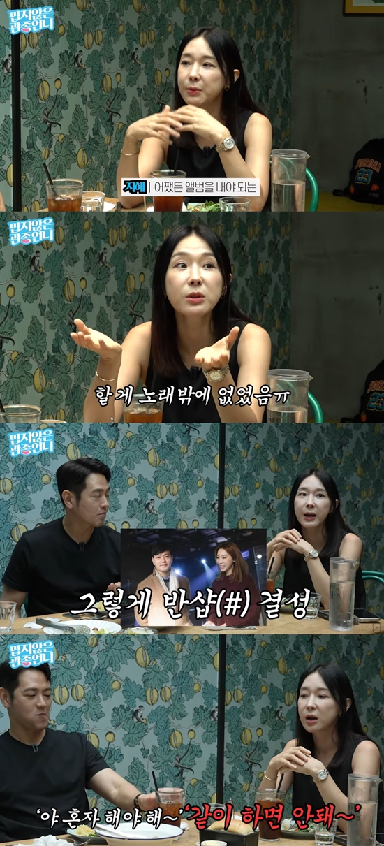 이지혜는 "나는 어쨌든 앨범을 내야 되는 (상황이었다). 노래밖에 없었다. 그것만 생각하고 살았다. 그래서 앨범을 내려고 얘랑 만나서 '우리 반샵을 하자'라고 하고 준비를 했다"라며 당시를 회상했다.