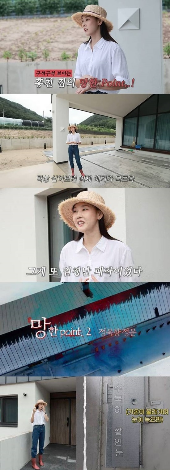 영상 속에서 "망한 거지, 망했지 뭐, 망했어"라고 자조하며 인사를 전한 한혜진은 "살면서 불편하고, 집을 잘못 지은 부분이 너무 많다. 나도 처음 집을 지어본 데다가 계속 아파트 생활을 했기 때문에 주택에 대한 배경지식이 없었다"라고 털어놓았다.