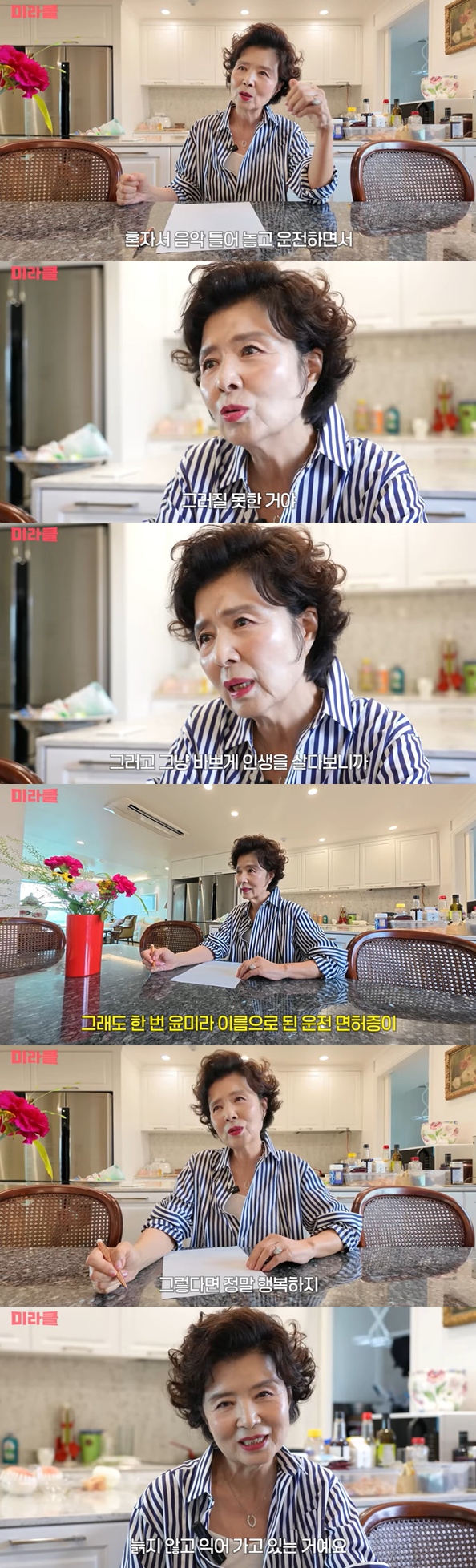 이에 윤미라는 "내가 가끔은 외롭고 그럴 때 혼자서 음악 틀어 놓고 운전하면서 그러고 싶은데 그러질 못했다. 그냥 바쁘게 인생을 살다 보니까 운전 배우러 다니는 것도 잊어버리고"라며 ""가능할까? 한 번도 내가 해본 일이 없다"고 걱정을 드러냈다.