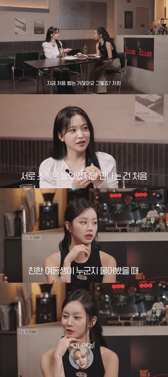 공개된 영상에서 예리는 "언니 근데 진짜 신기하다. 지금 처음 뵙는 거 아니냐"고 말했고, 혜리도 "처음 보는 거냐"고 궁금해했다.