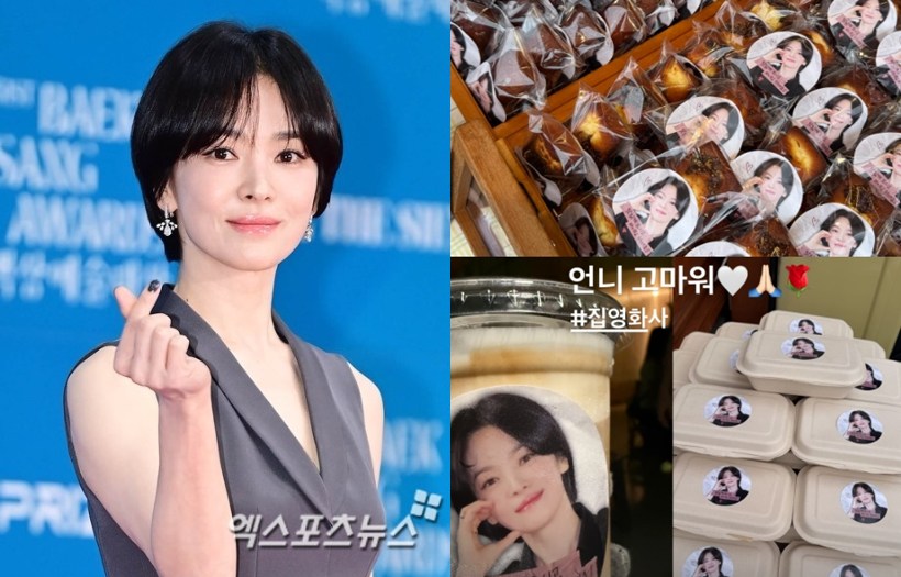 베이커리에는 송혜교의 얼굴 사진과 함께 "맛있게 드시고 파이팅 하세요"라는 글귀가 적혔다. 이에 송혜교는 "언니 고마워"라고 화답했다.