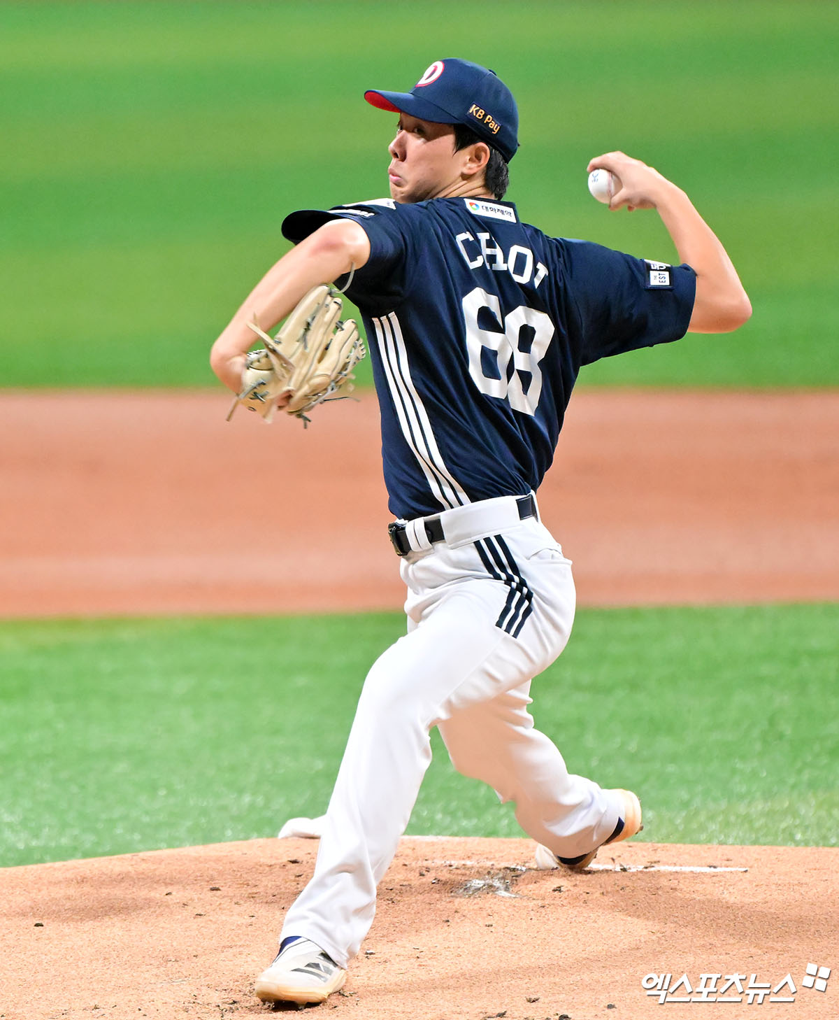 (엑스포츠뉴스 고척, 김한준 기자) 9일 오후 서울 구로구 고척스카이돔에서 열린 '2025 신한 SOL Bank KBO리그' 두산 베어스와 키움 히어로즈의 경기, 1회말 두산 선발투수 최민석이 공을 힘차게 던지고 있다.