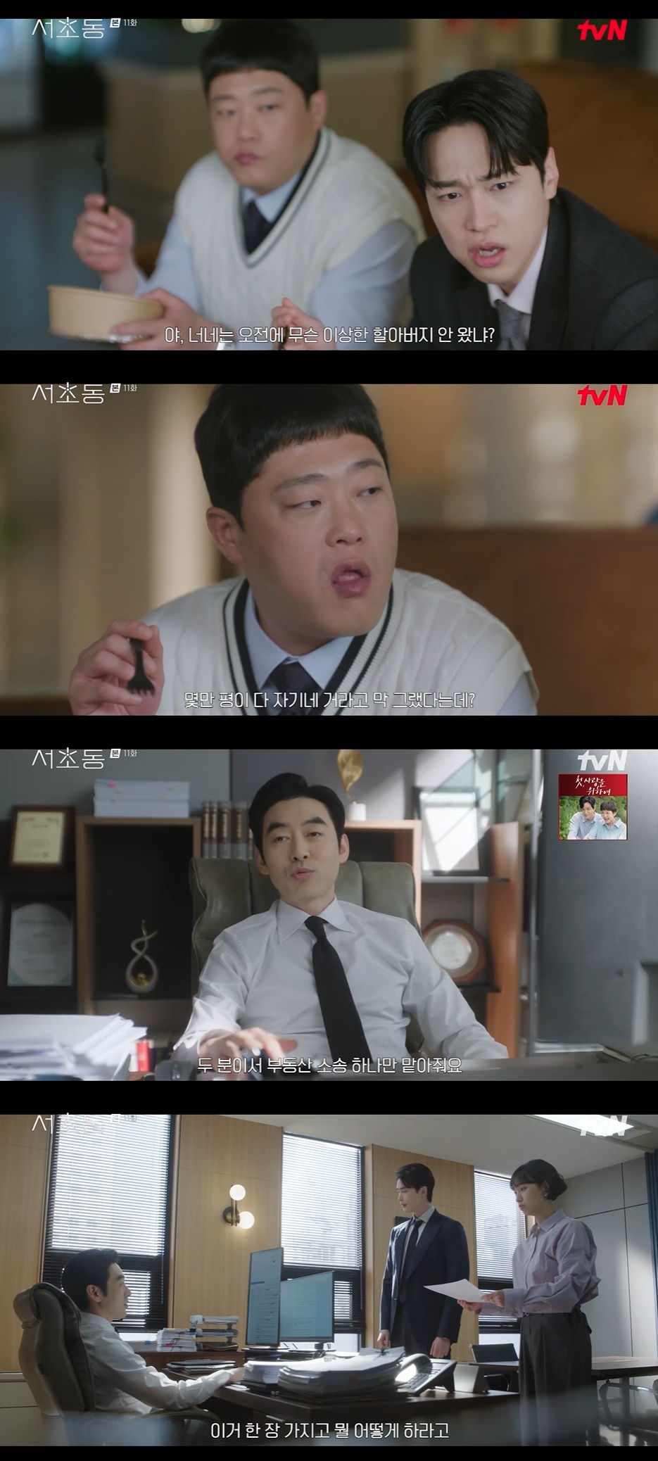 이어 대표님 호출을 받은 안주형과 배문정. 나경민(박형수) 대표는 두 사람에게 "두 분이서 부동산 소송 하나만 맡아줘라"라고 말했다.