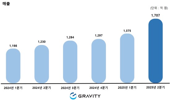 최근 그라비티는 2025년 2분기 매출 1,707억 원, 영업이익 197억 원을 기록했다고 밝혔다.