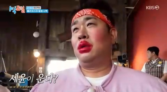 두 번째 주자 문세윤과 딘딘은 정신이 없는 상태로 돌아왔다. 특히 문세윤은 눈에 눈물이 그렁그렁해 이목을 집중시켰다.