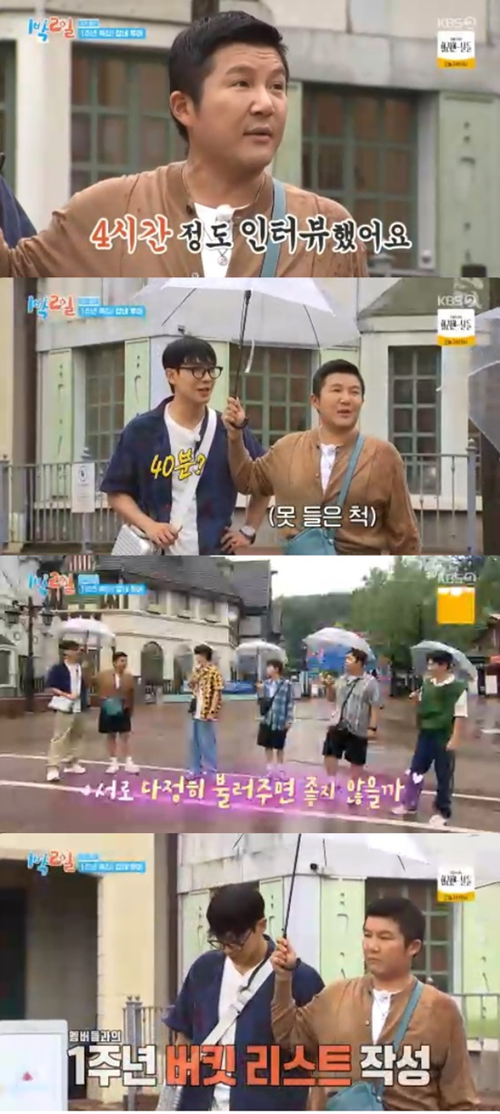 멤버들은 조세호와 이준의 버킷리스트를 함께해야 하는 상황에 긴장했다. 조세호는 멤버들에게 "제 1주년 버킷리스트는 여러분이 좋아할만한 것들이다"고 했다.