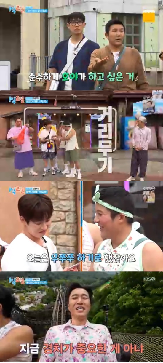 10일 방송된 KBS 2TV '1박 2일 시즌4'에서는 김종민, 문세윤, 조세호, 이준, 딘딘, 유선호의 경기 용인 여행기가 전파를 탔다.