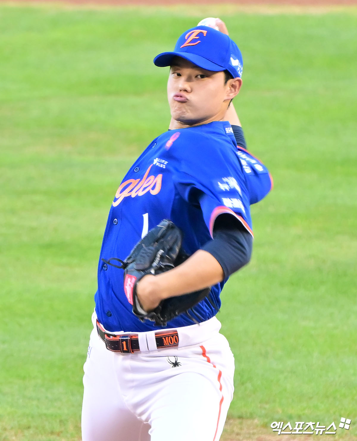 (엑스포츠뉴스 잠실, 김한준 기자) 10일 오후 서울 송파구 잠실야구장에서 열리는 '2025 신한 SOL Bank KBO리그' 한화 이글스와 LG 트윈스의 경기, 3회말 한화 선발투수 문동주가 공을 힘차게 던지고 있다.
