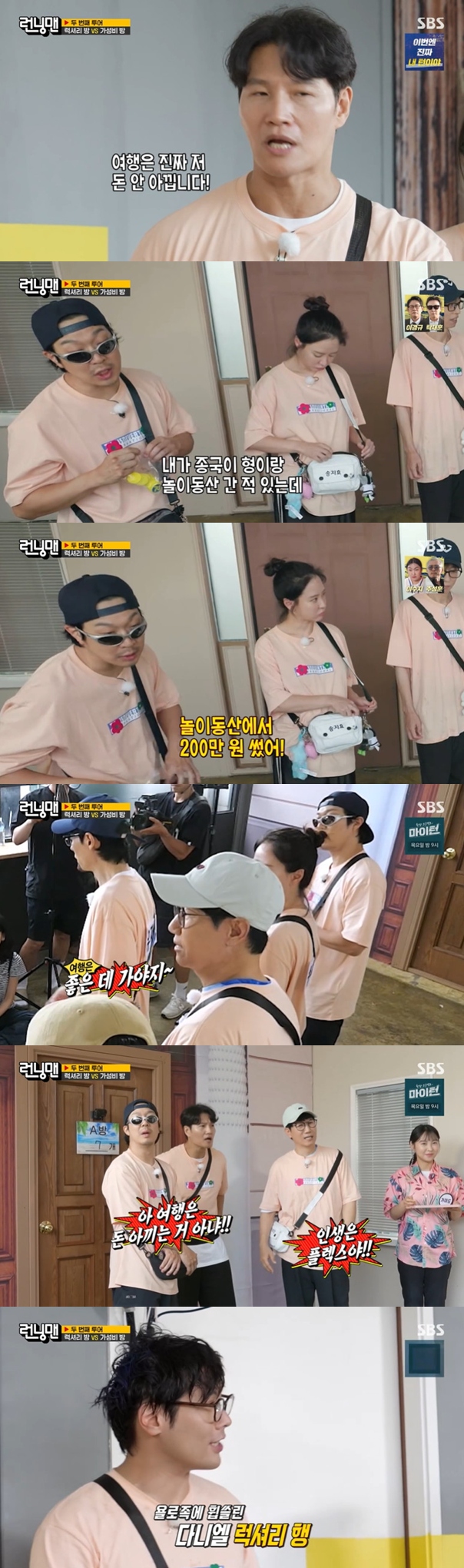 이를 확인한 김종국은 "여행은 진짜 저 돈 안 아낀다"면서 럭셔리 여행지 선택을 예고했고, 하하는 "내가 종국이 형이랑 놀이동산 간 적 있는데 종국이 형 200만 원 썼다"고 증언했다.