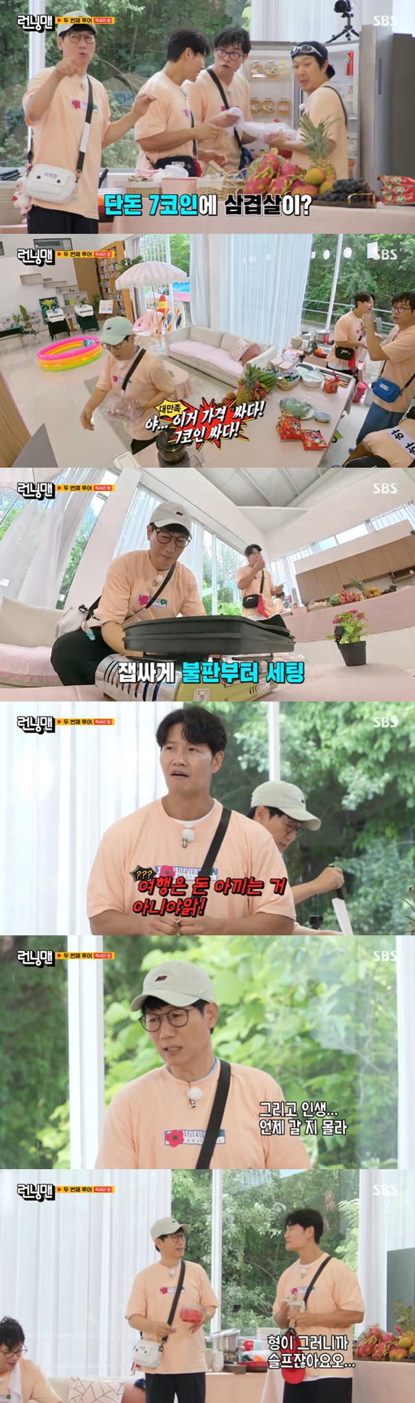 이어 냉장고 속 삼겹살부터 아이스크림까지 발견한 지석진은 "가격 싸다. 7코인 싸다"면서 "이게 행복이다"라며 불판부터 세팅했고, 김종국은 "그러니까 내가 늘 얘기하지 않냐. 여행은 돈 아끼는 거 아니다"라고 다시금 강조하는 모습을 보였다.