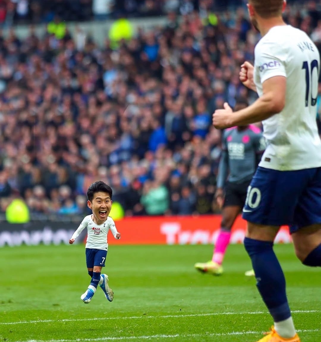 또 손흥민을 아주 작게 만들어 경기 사진에 편집하는 등 아직도 '토트넘 손흥민'을 미디어에 노출시키고 있다.
