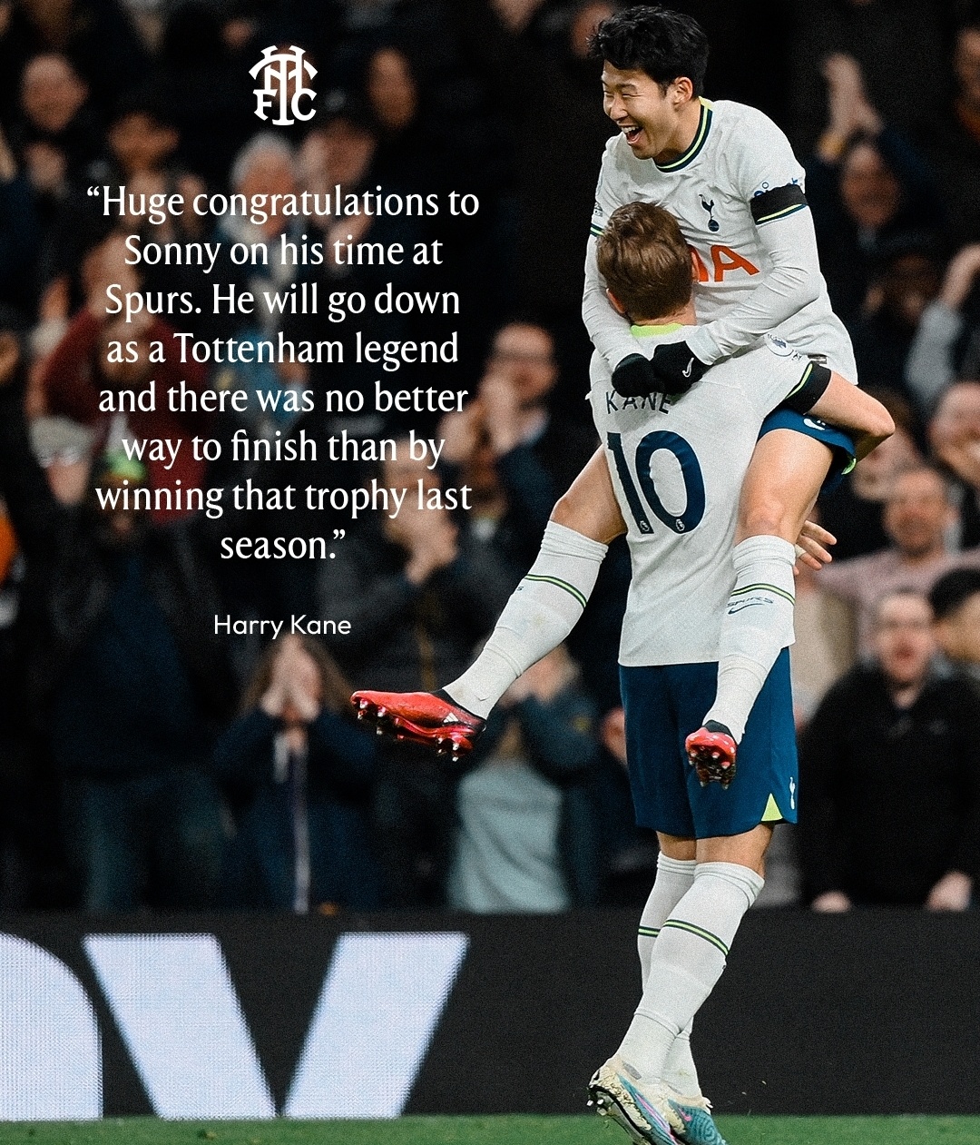 토트넘은 10일(한국시간) 밤 공식 SNS에 사진 2장을 올렸다. 손흥민과 케인이 골을 합작한 뒤 서로 포옹하거나, 손흥민이 세리머니하는 동안 케인이 뒤에서 끌어안고 있는 장면이다.