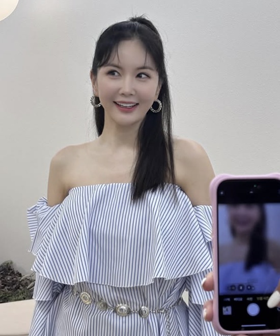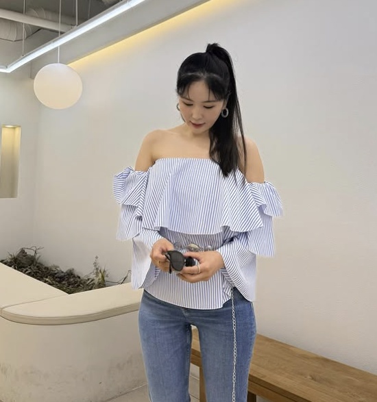 공개된 사진 속 장영란은 시원하고 화사한 분위기의 오프숄더 블라우스를 입고 있다. 옅은 파란색과 흰색 스트라이프 패턴의 블라우스는 어깨 라인을 드러내고, 큼직한 러플 장식이 눈길을 끈다.