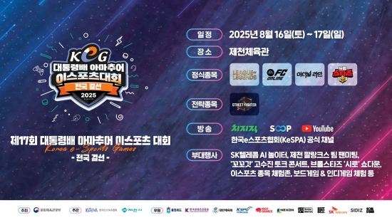 (엑스포츠뉴스 유희은 기자) 한국e스포츠협회(이하 협회)는 ‘제17회 대통령배 아마추어 이스포츠 대회’(이하 대통령배 KeG) 전국 결선이 오는 8월 16일(토), 17일(일) 양일간 충북 제천에 위치한 제천체육관에서 개최된다고 11일(월) 밝혔다.