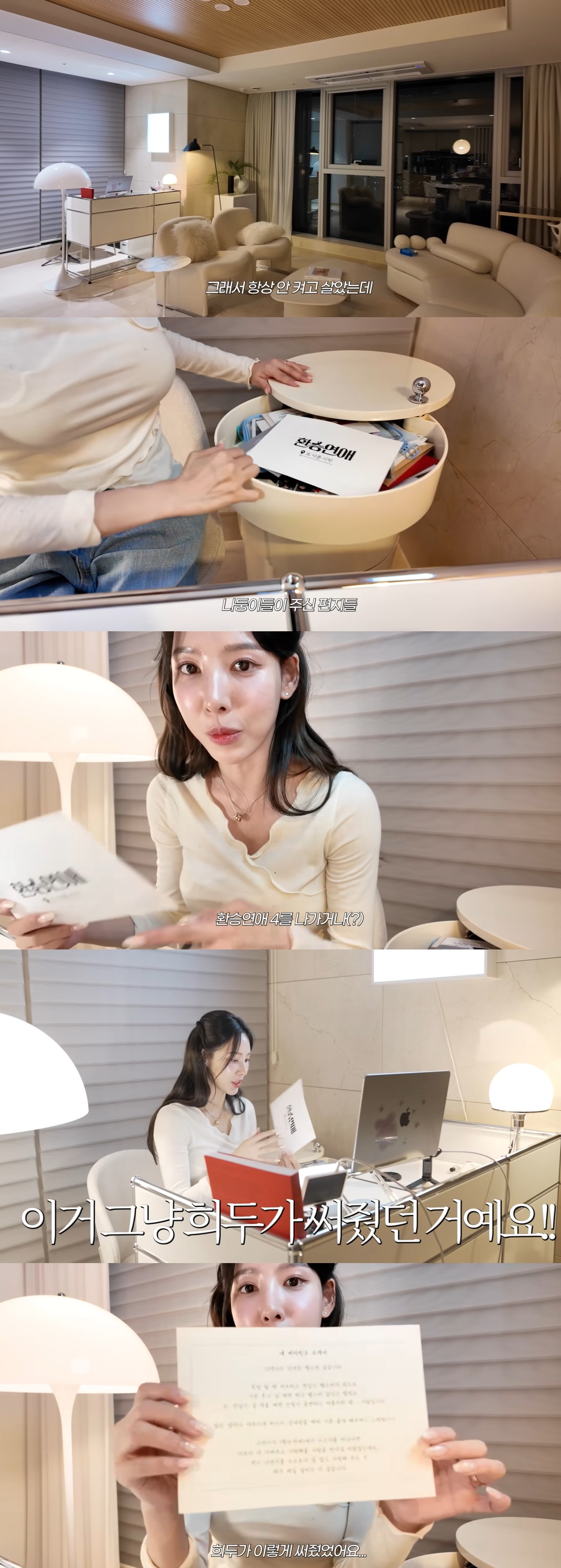 바뀐 공간에 만족을 표한 이나연은 "공간이 주는 힘이 있는 거 같다. 내가 쓰는 공간이 나를 만든다"며 편지를 모아 둔 공간도 공개했다.