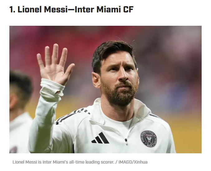 당연하게도 이번 순위에서 1위는 리오넬 메시가 차지했다. 매체는 "메시는 여덟 번의 발롱도르를 수상한 유일한 MLS 선수이며, 2022년 월드컵 우승 이후 인터 마이애미에 합류했다. 그는 MLS 역사상 가장 영향력 있는 선수"라고 평가했다.