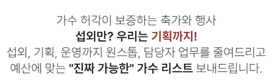 또한 해당 업체 대표는 "6년 정도 회사를 운영하며 실제 행사 담당자들이 따로 있고, 축가는 별도로 섭외해왔다"며 "오히려 가만히 있어도 축가를 올려달라며 프로필을 보내는 경우도 있다. 실제로 행사도 많이 진행했고, 진행된 행사 레퍼런스도 갖고 있는데 억울하다"고 강조했다.