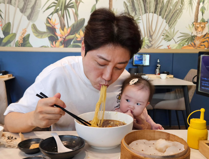 테이블 위에는 뜨끈한 국물 요리와 딤섬까지 차려져 있어, 가족 외식의 훈훈한 분위기를 더했다. 특히 손헌수의 표정과 딸의 반응이 절묘하게 어우러져 ‘육아 예능’ 속 한 장면 같은 생동감을 자아낸다.