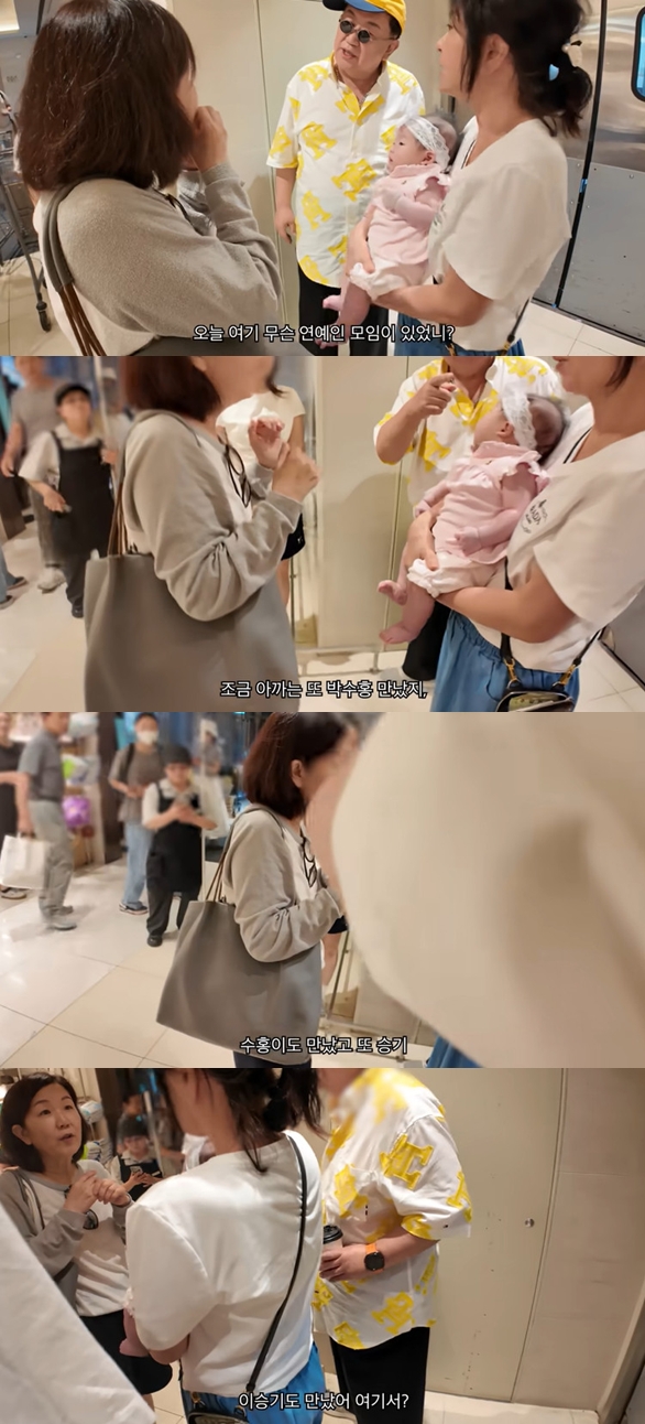 이용식은 "지금 제정신 아니다. 아까는 수홍이도 만났고 또 승기"라며 박수홍 김다예 부부에 이어 이승기와 마주쳤음을 전했고, 이에 이성미는 "여기서 이승기도 만났냐"면서 "웬일이냐"라고 덧붙였다.