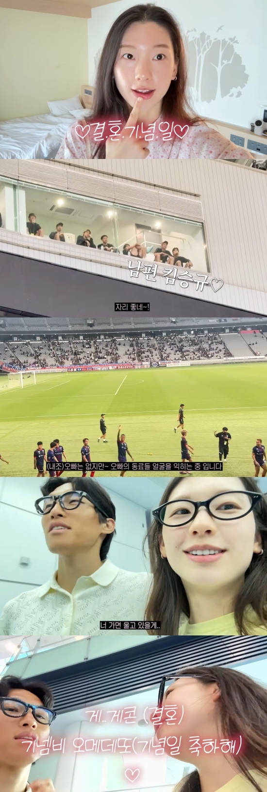 김진경은 지난해 6월 7살 연상의 FC도쿄 소속 축구선수 김승규와 결혼했다.