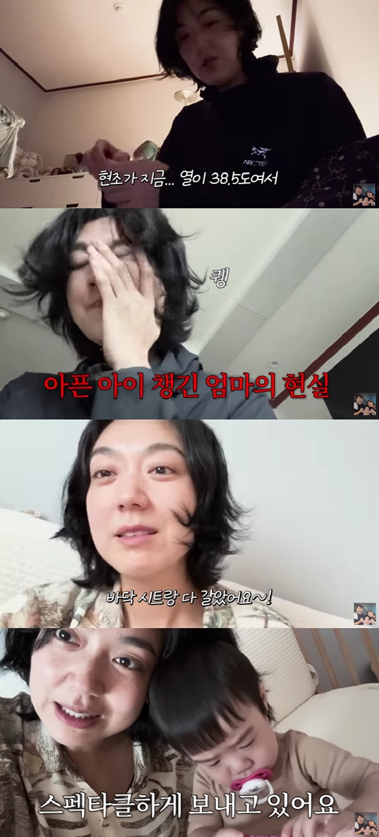 새벽에도 난리가 이어졌다. 이은형은 "현조가 약을 먹고 다 토해서 침대를 갈고 있다. 시트를 두 번이나 갈고 있다"고 토로하며 한숨 쉬었다.