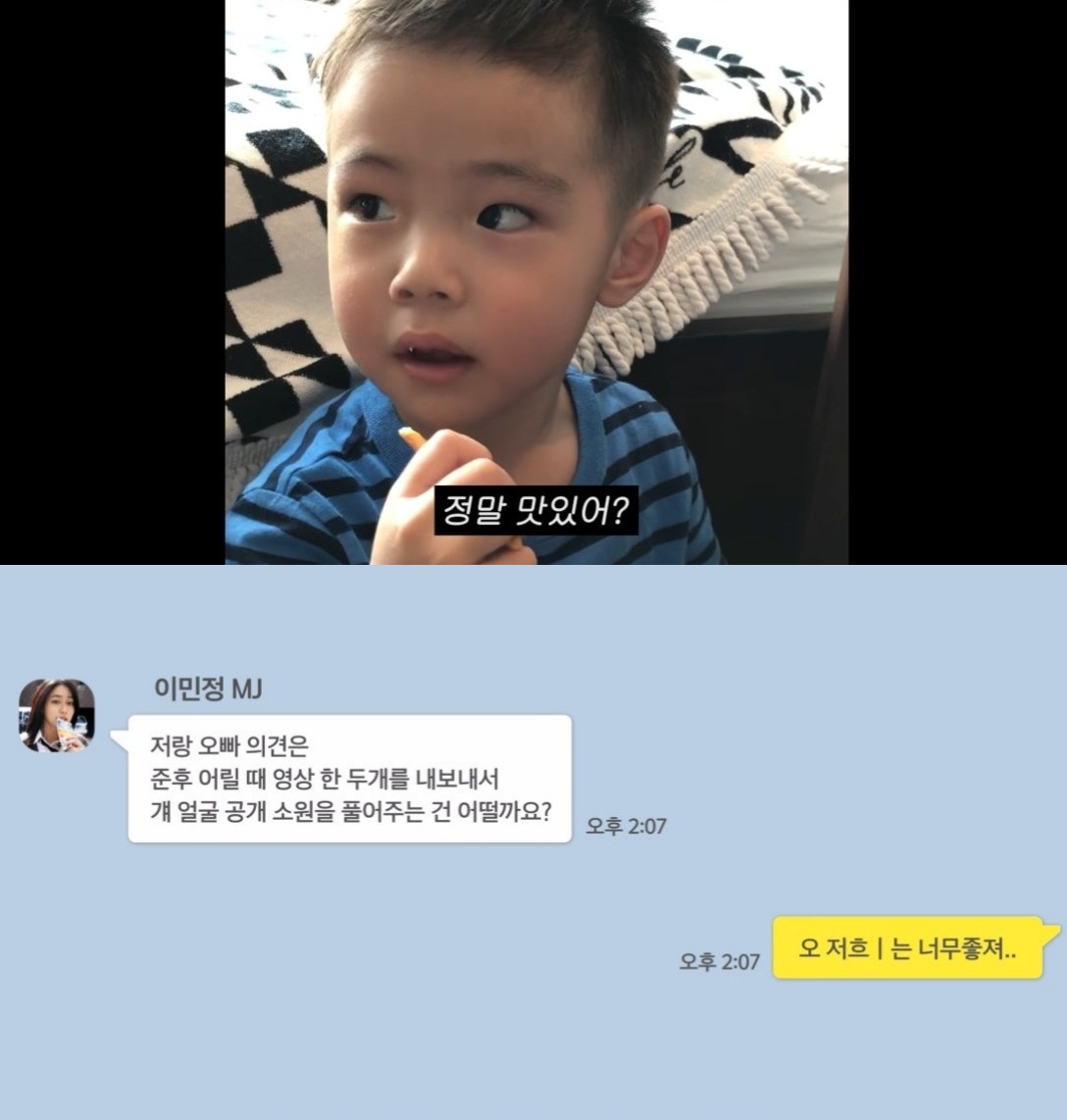 엄마의 유튜브에 출연하고 싶다는 아들의 소원에 이민정은 제작진에게 "저랑 오빠 의견은 준후 어릴 때 영상 한두 개를 내보내서 얼굴 공개 소원을 풀어주는 건 어떨까요?"라고 제안했다고 밝혔다.