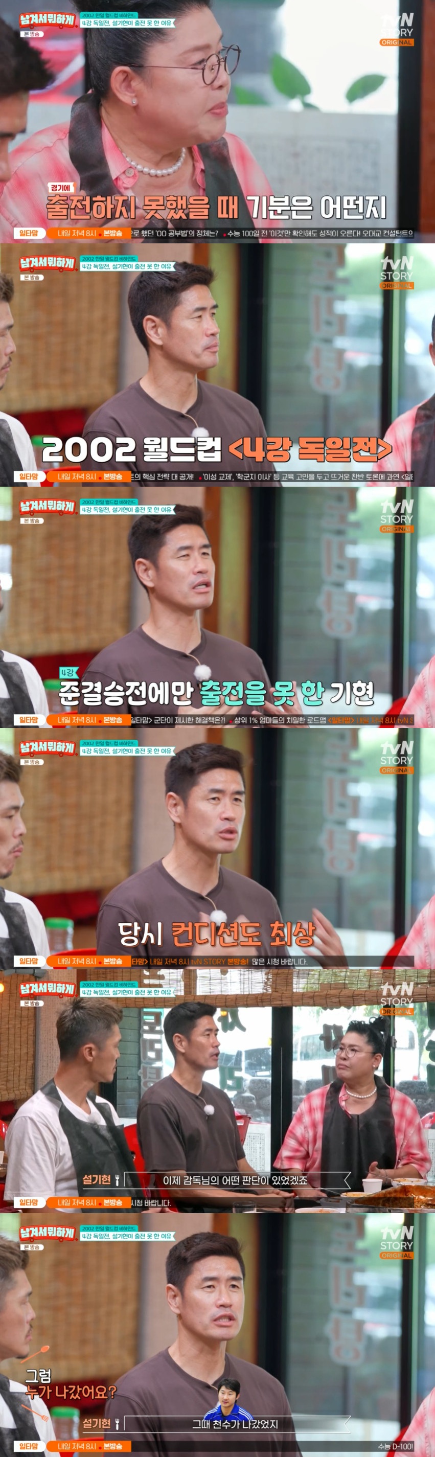 이에 설기현은 "전 2002월드컵 독일전 4강 때 그랬다. 그 전까지는 선발전에 다 나갔는데 준결승전에만 딱 선발이 안 됐다. 그때 몸도 좋고 전 경기에서 골도 넣고 컨디션이 좋을 때였다"고 회상했다.