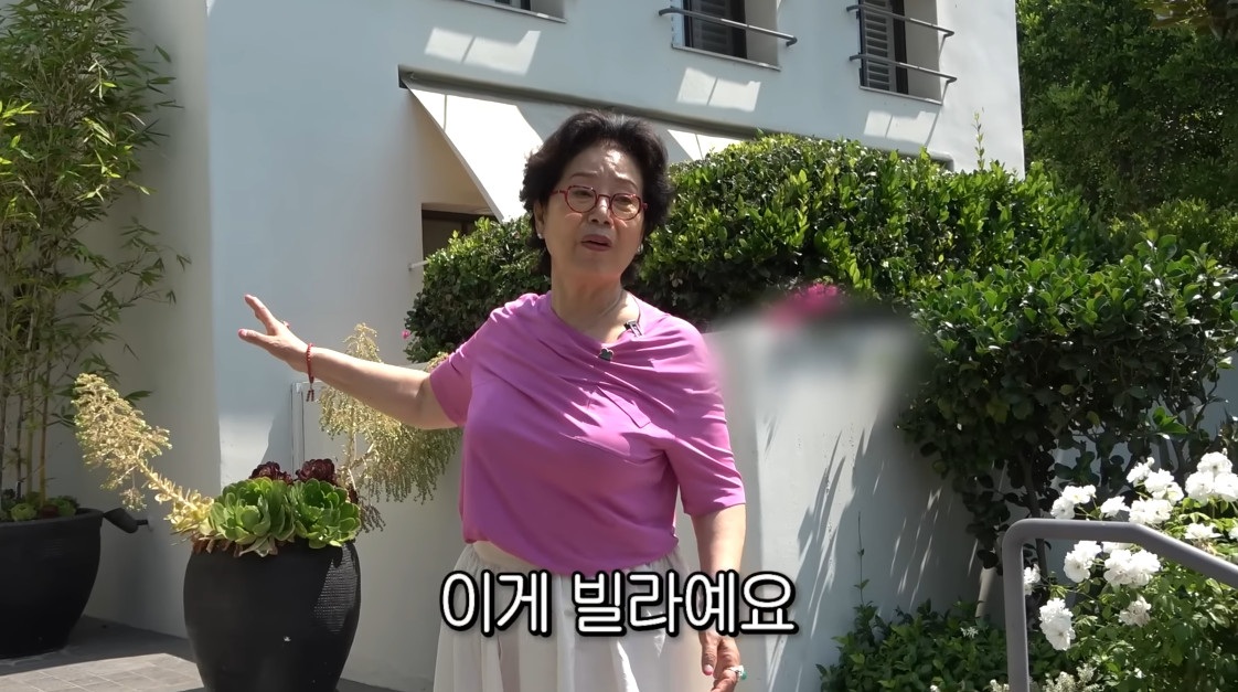 이날 선우용여는 넓은 고급 빌라 단지에서 등장했다. "여기가 4가구가 사는 빌라다. 꽃이 너무 예쁘지 않나"라며 딸의 집을 소개한 선우용여는 "저쪽 뒤에는 수영장이다"라고 소개했다.