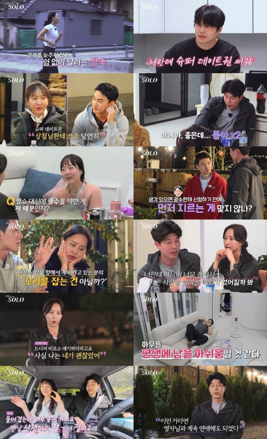 13일(수) 방송한 ENA와 SBS Plus의 리얼 데이팅 프로그램 ‘나는 SOLO’에서는 정숙과 옥순, 정숙과 영자 사이에서 헤매는 상철과 영수의 ‘역대급 위기’가 펼쳐졌다.