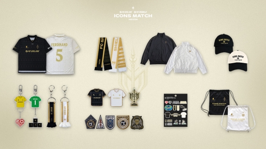‘FC 스피어’, ‘실드 유나이티드’의 정체성인 ‘창과 방패’에서 착안한 유니폼, 바람막이, 머플러와 더불어 모자, 키링, 자수패치, 짐색 등을 선보이며, ‘2025 아이콘매치’ 직관의 재미를 높이고 소장 가치를 느낄 수 있도록 디자인됐다. 8월 14일부터 9월 5일까지 리셀 플랫폼 크림(KREAM)을 구매할 수 있고, 행사가 진행되는 9월 13, 14일 양일간 현장에서도 구매 가능하다.