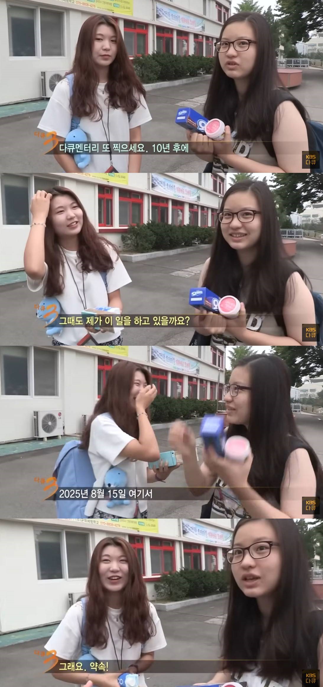 이에 카메라 감독이 "그때도 제가 이 일을 하고 있을까요?"라고 답하자, 두 학생들은 "2025년 8월 15일 여기서 만나요"라고 제안했고 카메라 감독도 "그래요, 약속. 다 찍었어요"라고 응했다.