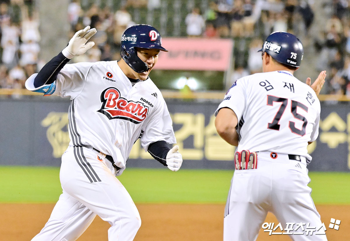 (엑스포츠뉴스 잠실, 김한준 기자) 15일 오후 서울 송파구 잠실야구장에서 열린 '2025 신한 SOL Bank KBO리그' KIA 타이거즈와 두산 베어스의 경기, 두산이 연장 접전끝에 안재석의 끝내기 홈런에 힘입어 KIA에 6:5 역전승을 거뒀다.
