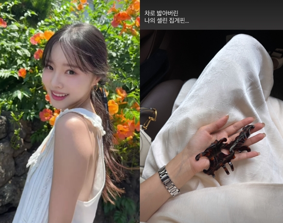 15일 이솔이는 개인 계정에 "차로 밟아버린 나의 셀린 집게핀"이라고 적었다.