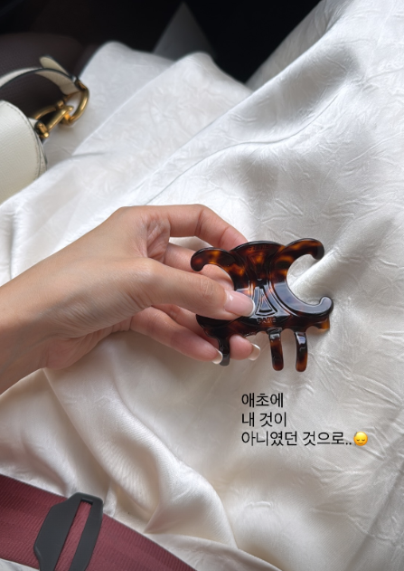 함께 공개된 사진에는 명품 브랜드 C사의 집게핀이 산산조각 난 모습이 담겼다. 해당 제품은 약 66만 원 대의 고가 헤어핀으로 알려져 있다.