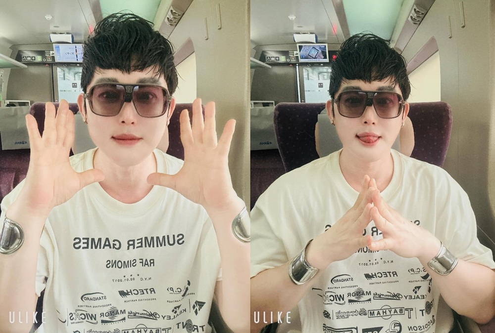 공개된 사진 속 황재근은 기차 안에서 다양한 포즈를 취하고 있어 눈길을 끈다.