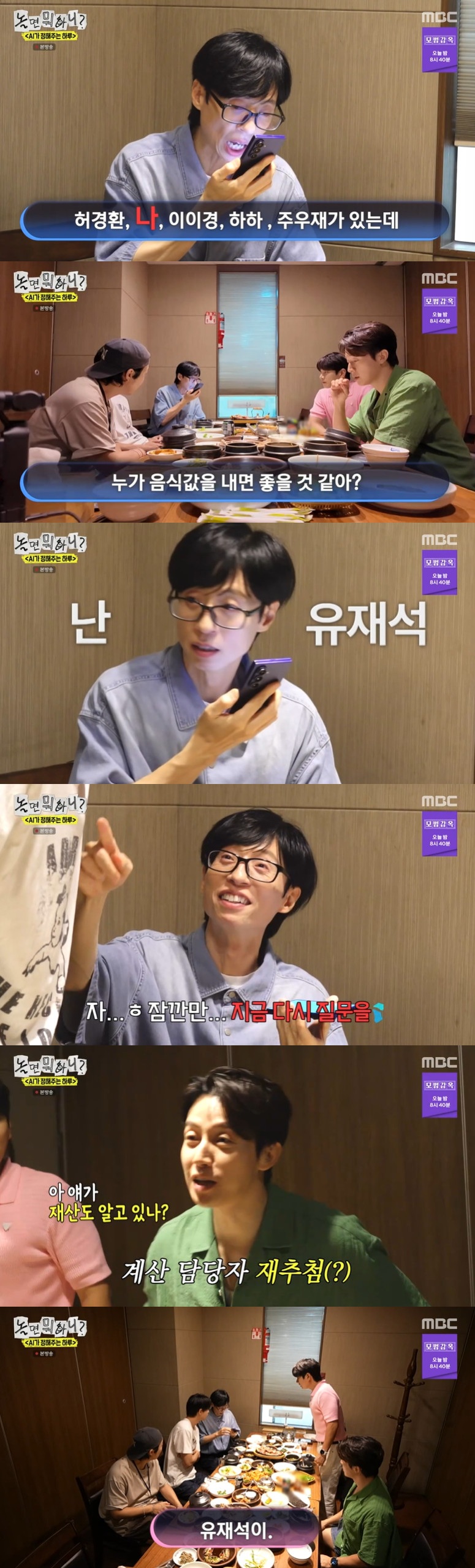 (엑스포츠뉴스 김보민 기자) 유재석이 AI에게 계산 담당자로 2번 지목당했다.