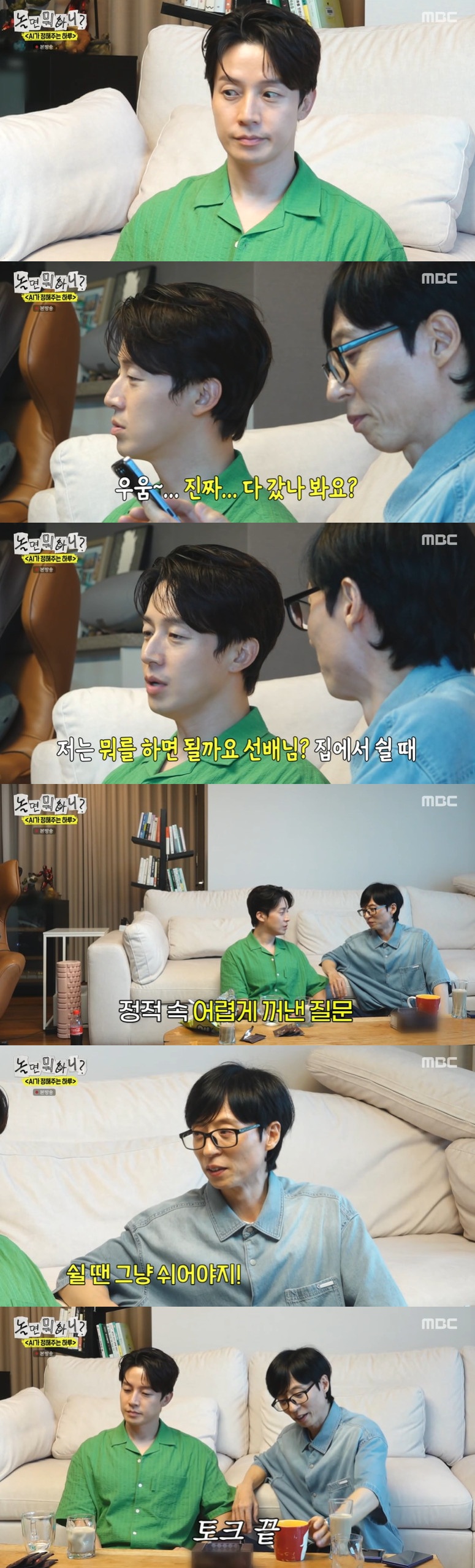 그러나 유재석이 "쉴 땐 그냥 쉬어야지. 다음 녹화를 위해서"라고 명료하게 답하며 대화는 종료됐고, 침묵이 이어지자 허경환은 "이제 형님도 가시죠"라고 넌지시 말했다.