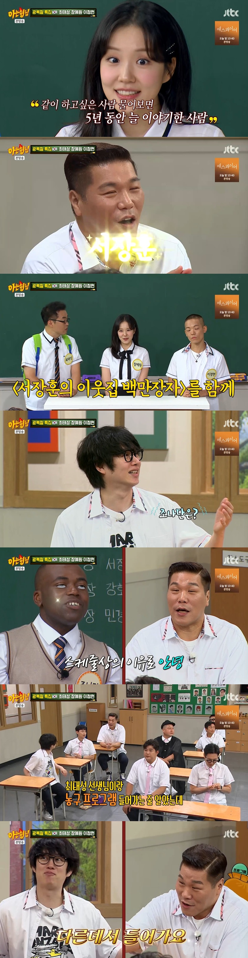 김희철이 "농구 프로그램 들어가는 줄 알았다"고 하자 서장훈은 "다른 데서 들어간다"고 답했고, 이어 신동이 "난 또 요리 프로그램 들어가는 줄 알았다"고 하자 "그것도 들어간다"고 말해 감탄을 자아냈다.