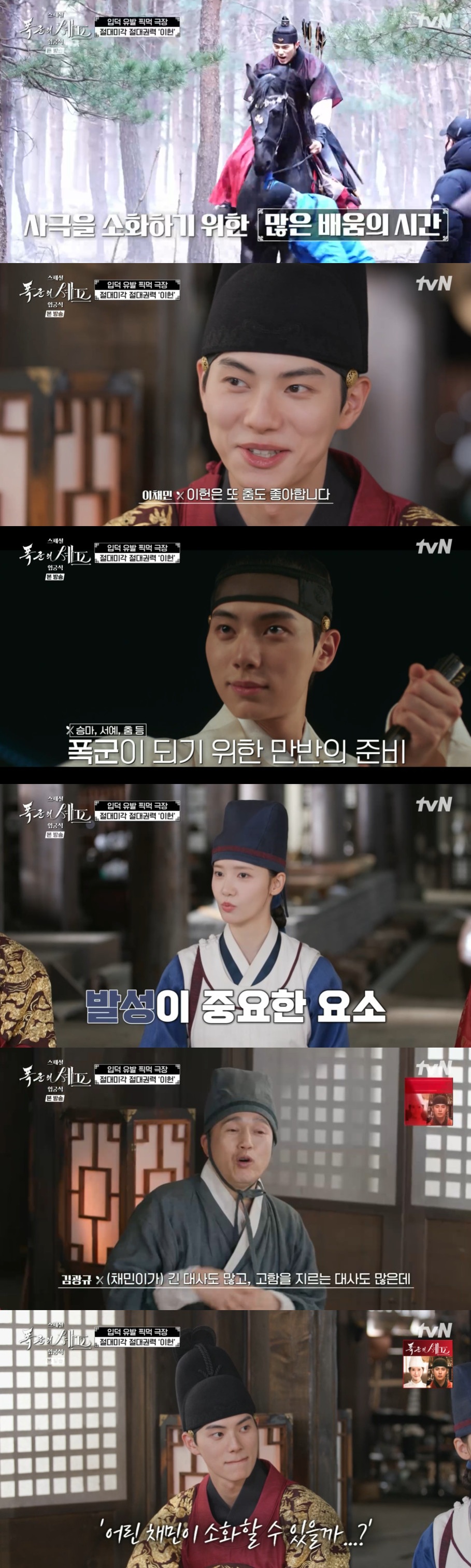 이채민은 "사극은 왕이 위엄 있어야하니 소리도 중요하다고 생각했다. 노력하고 연습했다"며 발성에 대해서도 언급했다. 이에 김광규는 "긴 대사도 많고 고함 지르는 대사도 많다. (이채민이) 2000년생인데 저런 대사를 할 수 있을까 했다. 깜짝 놀랐다. 굉장히 우렁차고 통이 좋아 엄청 울린다"며 의외의 면모에 깜짝 놀랐음을 밝혔다.