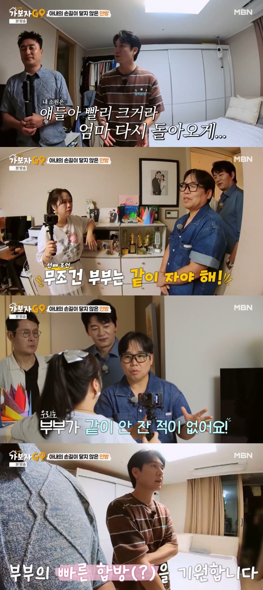 정은표 또한 "무조건 부부는 같이 자야한다. 아이들 빨리 독립시키고 부부 위주로 살아야한다. 우린 둘이 안 잔 적이 없다. 애기 키워도 밑에 눕혀두고 잠들면 침대로 올라왔다"고 밝혔다.