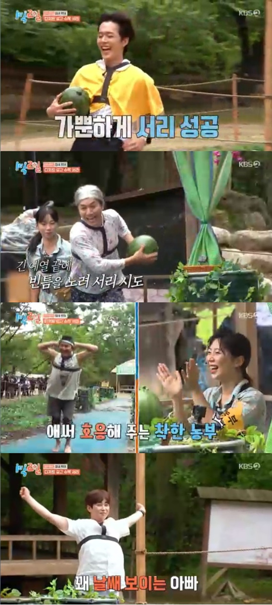 유선호에 이어 김종민은 열정농부를 상대로 수박서리에 성공했다. 조세호는 댄스공격으로 열정농부의 힘을 빼놓으며 팀내 세 번째 성공자가 됐다.