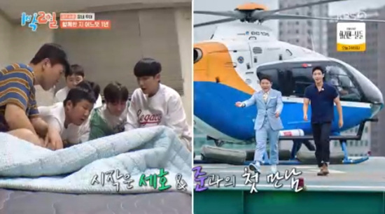이날 멤버들은 조세호와 이준의 합류 1주년을 기념해 단합력을 알아보는 잠자리 복불복 게임에서 성공하며 전원 실내취침을 하게 됐다.