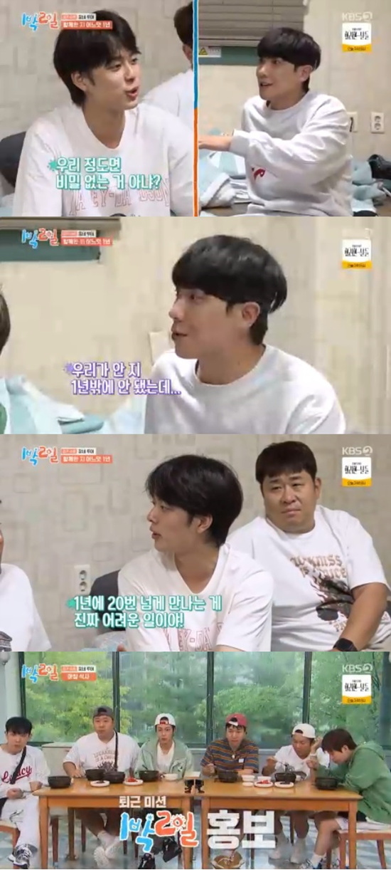 17일 방송된 KBS 2TV '1박 2일 시즌4'에서는 조세호와 이준이 합류 1주년을 맞아 속마음을 전하는 모습이 전파를 탔다.